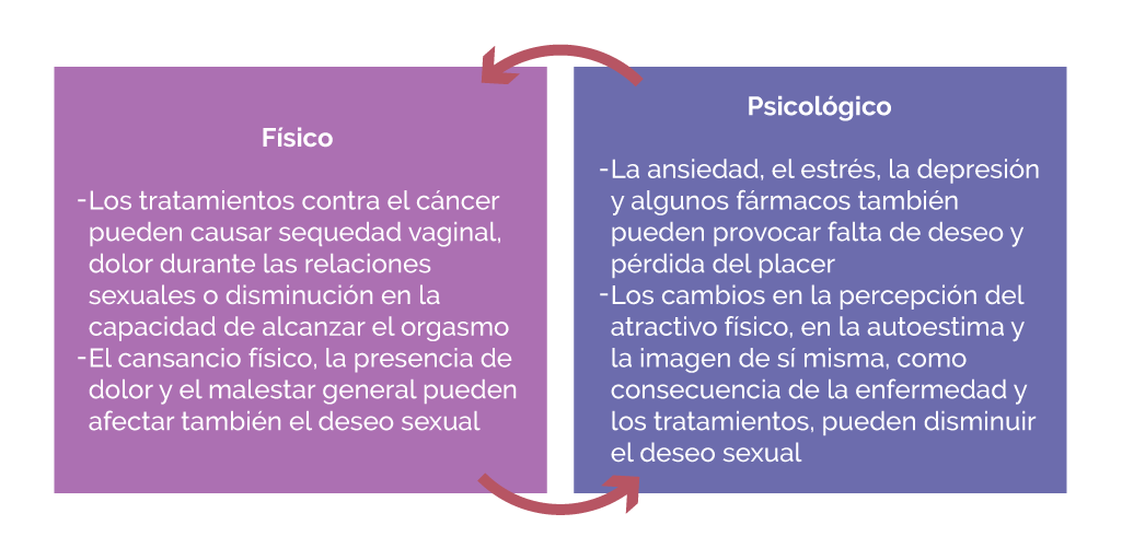 Es necesario que conozcas las consecuencias que los tratamientos y la situación emocional que atraviesas puedan generar sobre tu sexualidad. Es fundamental aclarar que la sexualidad depende, tanto del aspecto físico, como del psicológico.