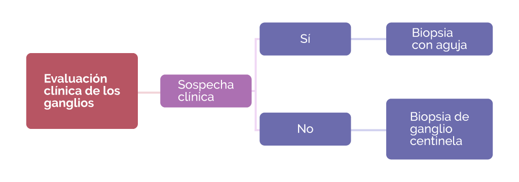 - Al momento de la evaluación clínica, el cirujano revisa los ganglios en la axila para ver si no están afectados por el tumor. Sin embargo, no es suficiente la sola evaluación clínica para determinar si los ganglios están afectados por el cáncer y normar su conducta.