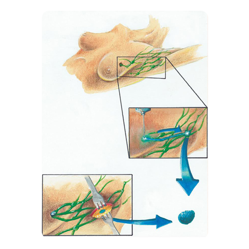 El ganglio centinela es el ganglio más cercano al sitio del tumor y se extrae para su análisis. Este procedimiento consiste en: